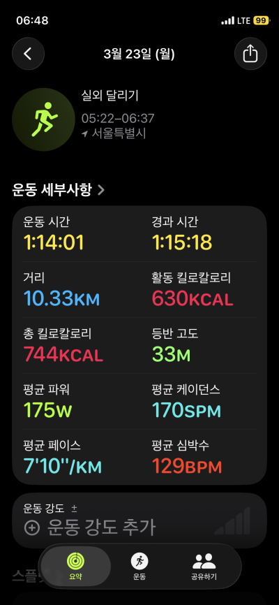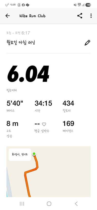 여 | 8km | 00:44:26 | 새벽 하천런~! |